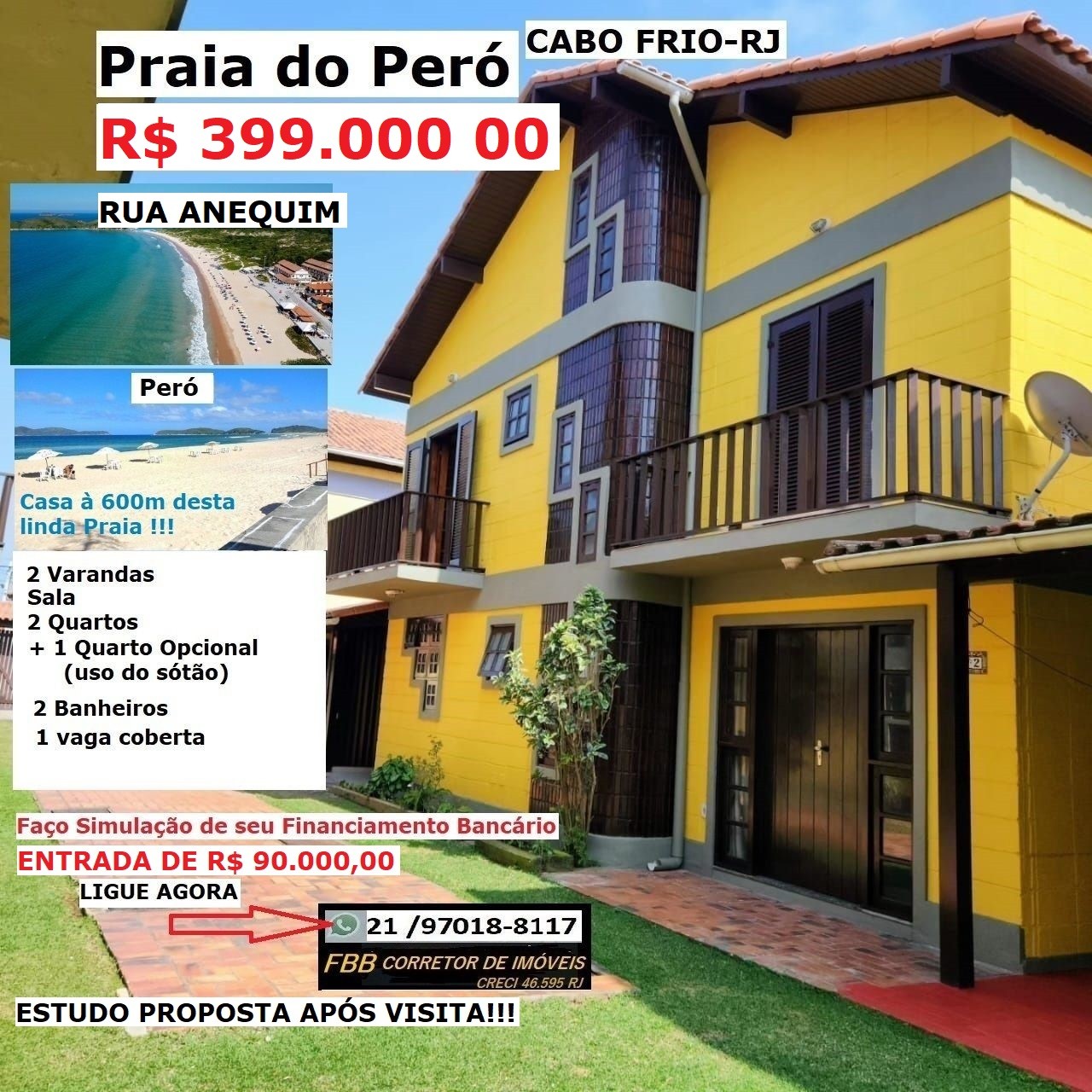 Cabo Frio- Peró- Essa é a sua chance ! -R$ 340 Mil- local ESPETACULAR!- Entrada de R$ 70 Mil e saldo financiado pela CEF ou seu Banco de...